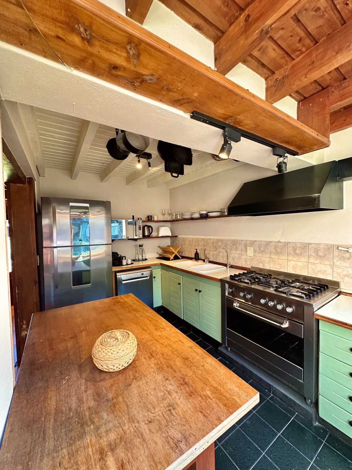 La casa principal cuenta con 2 plantas; una planta baja con living, comedor, cocina integrada, lavadero y toilette; y una planta alta con 3 dormitorios y dos baños completos con bañadera. El cuarto principal es en suite con cama superking size; mientras el segundo cuarto tiene dos camas twin; y el tercer cuarto una cama de plaza y media estilo diván; con carrito abajo. Y luego un hall con escritorio y biblioteca.