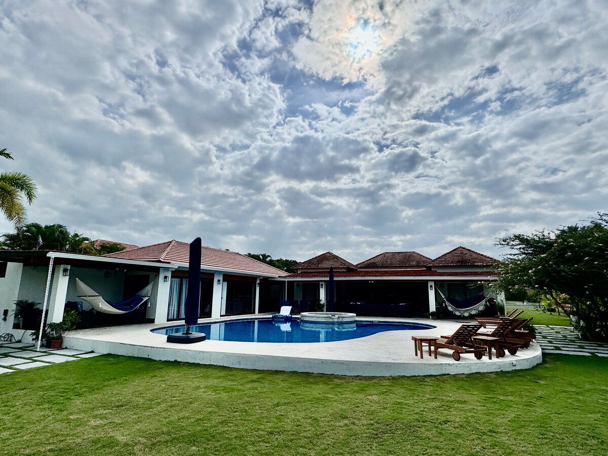 Espectacular villa Privada exclusiva a solo 3 minutos de la playa en auto, súper espaciosa, ideal para compartir en familia, con amigos o reuniones corporativas. La propiedad está llena de sorpresas y con muchas cosas por hacer incluyendo su piscina, jacuzzi, mesa de billar, mesa de ping pong, mesa de domino, hamacas, amplias áreas verdes, BBQ a gas, variedad de juegos de mesa y una cocina totalmente equipada.