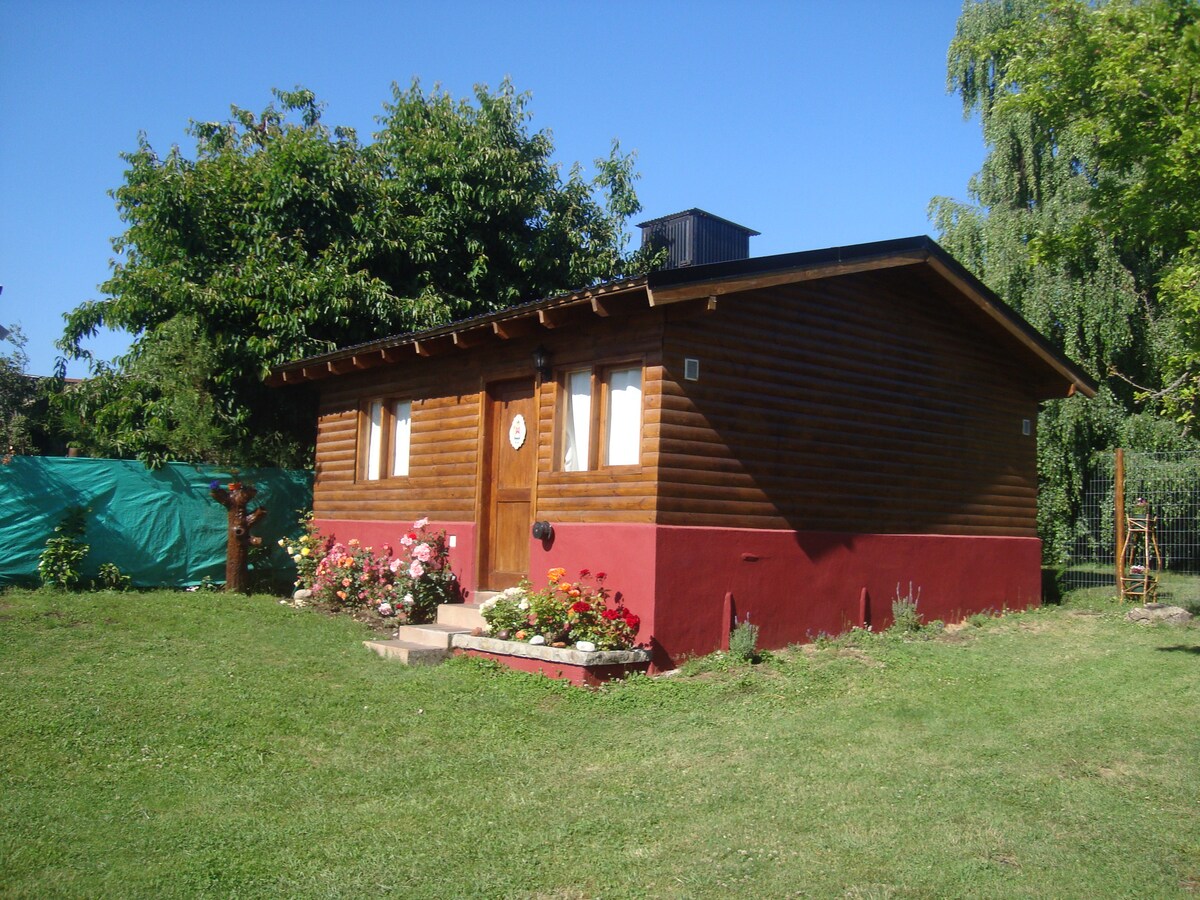 Cabaña de tres ambientes , con baño y cocina completos,mide 37 m. cuenta con sensores de monoxido de carbono , calefactores ,ventiladores de techo y alarma . ubicada en el jardin de una casa de familia, en un barrio tranquilo , a 2,5 km del centro, se puede estacionar dentro del jardin , a dos cuadras hay paradas de colectivos y un centro comercial completo .