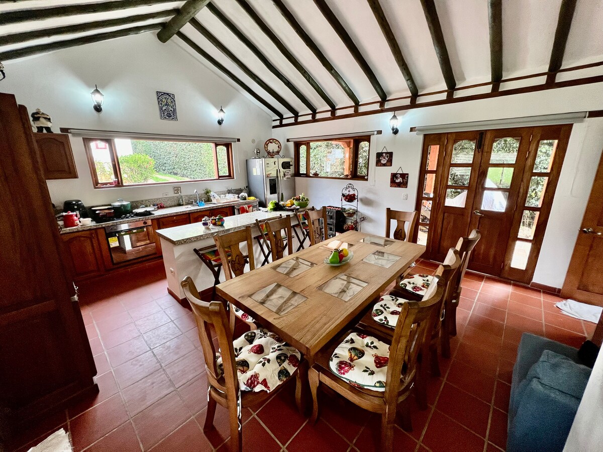 ¡Bienvenidos a nuestra Casa Campestre en Villa de Leyva! Diseñada por mi hijo, un talentoso arquitecto, ofrece un ambiente único para descansar y reconectar con la naturaleza. Con amplios espacios llenos de luz y una conexión especial, como el árbol de Clavellino sembrado por mi padre, la casa te invita a disfrutar del confort, áreas acogedoras, internet alta velocidad, cercanía a la plaza principal, zonas verdes amplias y parqueo. Lugar perfecto, ¡disfruta en familia y explora Villa de Leyva!.