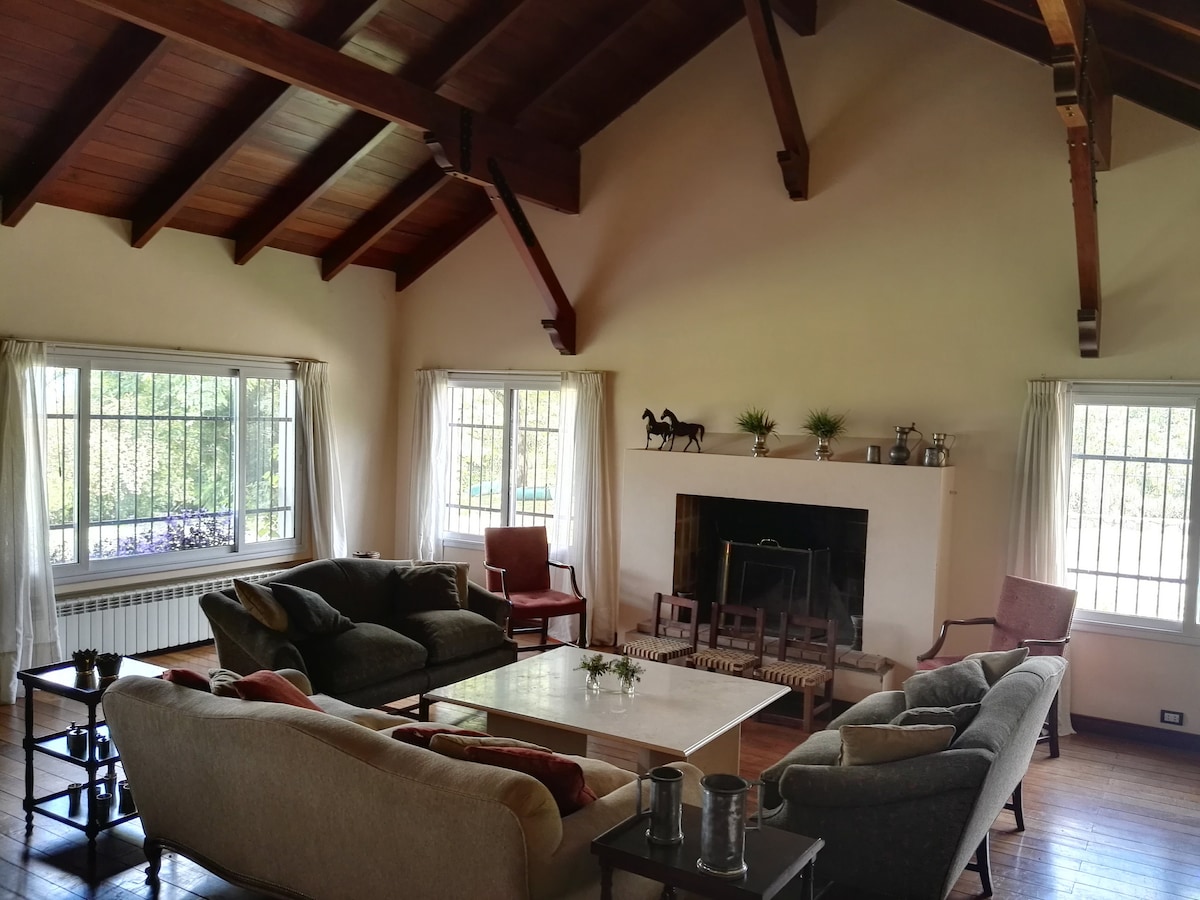 Nuestra casa esta emplazada sobre un cerro dentro del exclusivo country club Altos de San Lorenzo con increíbles vistas y seguridad privada. La casa se destaca por su: Living con vistas y techos altos Comedor formal 4 suites Parrillero con mesa para 8/10, sillones y terraza Pileta con efecto infinito y reposeras Cocina completamente equipada Acceso a cancha de tenis 3 horas diarias de servicio de mucama