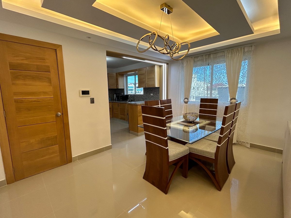 Enjoy this modern, fully equipped penthouse located in a safe, central area, just 5 minutes from Playa Los Almendros and the center of Peravia (Baní). The apartment features 3 bedrooms, 4 bathrooms, air conditioning, spacious closets, parking for 2 vehicles, and amenities including a gym, children’s play area, and event space on the 5th floor. Billiard table is for adults only. Optional services: vehicle rental and airport transfers. No elevator.