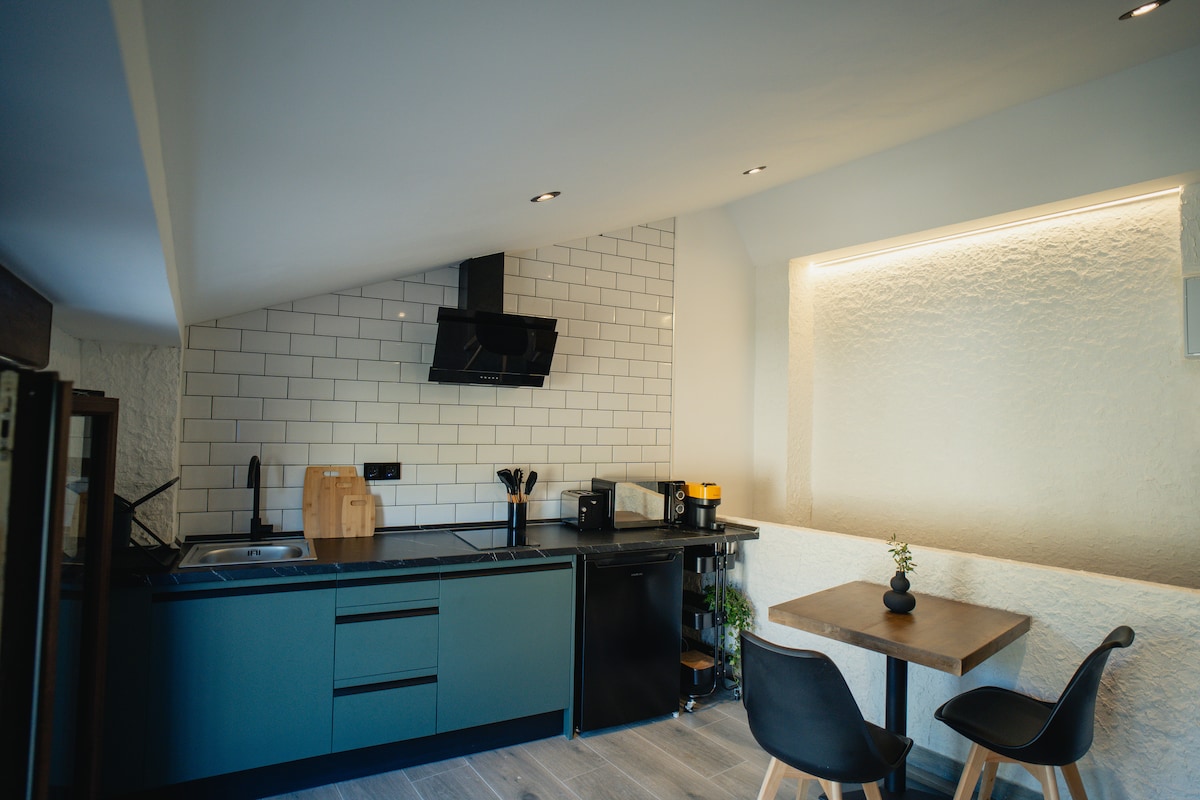 Coquette_ Contempla montañas, rio y el puente romano desde la cama del alojamiento , desde la bañera hidromasaje o sentado al sol de nuestro balcón. Ubicado en un lugar privilegiado, alojamiento singular ya que la mitad del mismo está enclavado en la montaña de nuestro pintoresco pueblo. Apartamento de 28m en concepto abierto. Dispone de secador y plancha de pelo así como de amenities. Plancha ropa vapor. Cocina equipada con microondas, nevera, vitro, cafetera nespresso .