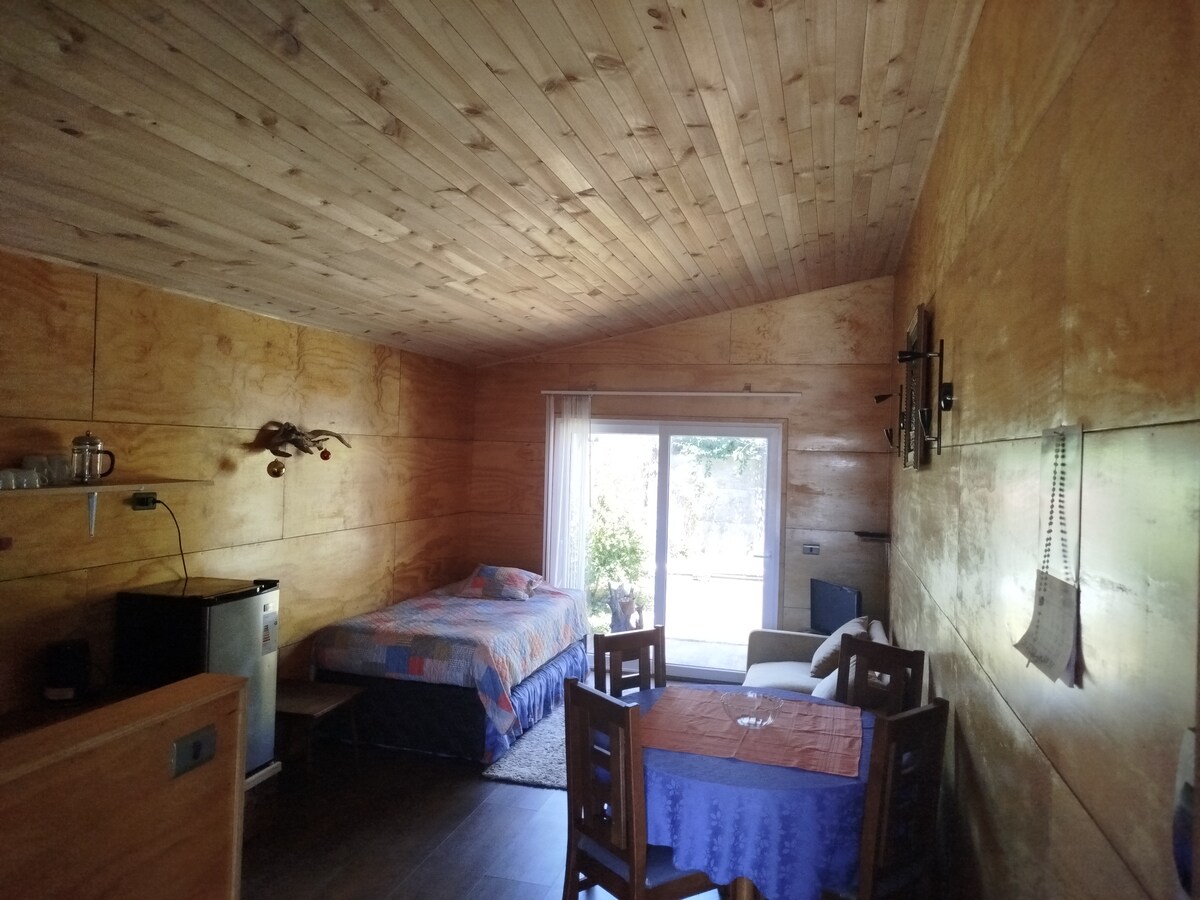 Cabaña de lujo tipo loft con finas terminaciones, inserta en un bosque centenario de arboles nativos. Baño en suite, walking closet, cocina integrada completamente equipada. Combustión a leña, estufa toyotomi. Gran terraza, parrilla, mesa en el bosque para asados, piscina, estacionamiento privado, smart tv, netflix, tv cable y wifi fibra optica.