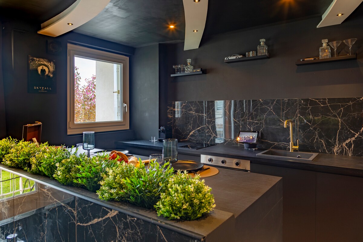 Una escapada única y romántica en el corazón de Amboise, a orillas del Loira, un espacio atípico y auténtico (tallado en la roca en el siglo XVI) con una decoración de diseño y equipamiento moderno. En un espíritu loft en varios niveles: el baño y su BALNEO/JACUZZI para un máximo de relajación en pareja. El salón está equipado con un televisor conectado de 65 pulgadas y una barra de sonido de alto rendimiento. El espacio nocturno y su cama de diseño para una noche cómoda y, por último, la zona de comedor.