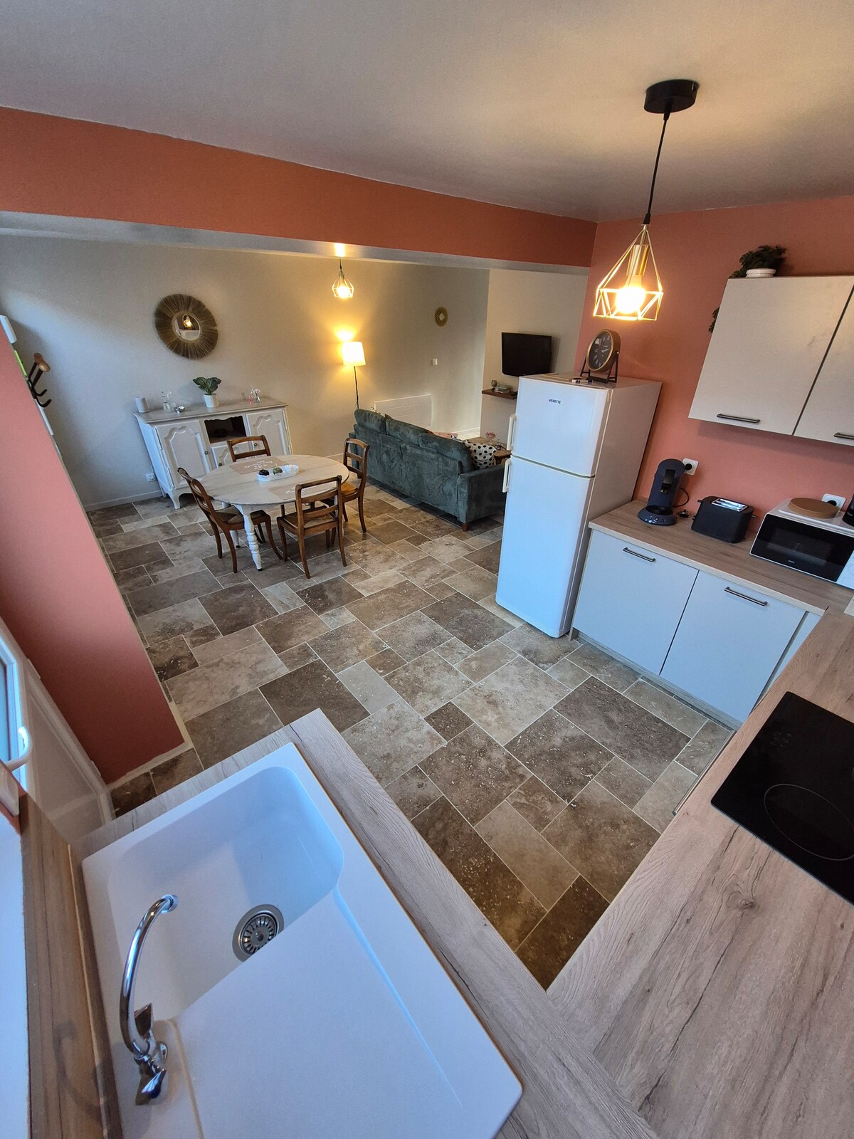 Casa en una aldea tranquila que incluye: Gran sala de estar (salón, comedor, cocina), 3 dormitorios, uno de ellos con baño privado, un baño, WC y un lavadero con lavadora Cocina totalmente equipada (lavavajillas, nevera/congelador, horno, microondas, hervidor eléctrico) Estacionamiento privado Muebles de jardín, barbacoa, mesa de ping pong y juegos al aire libre Se proporciona ropa de cama (camas hechas a la llegada, toallas de baño y paños de cocina)
