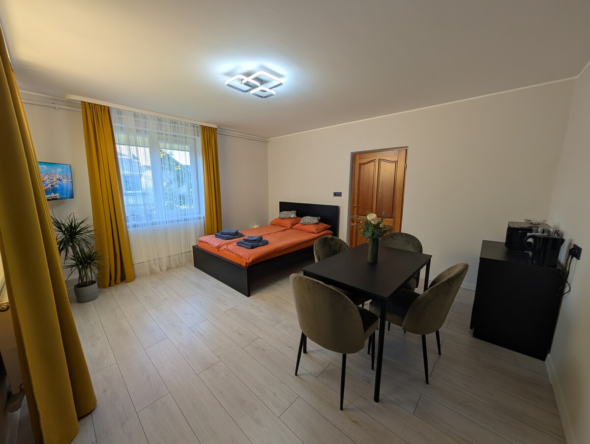 El apartamento se encuentra en el casco antiguo, cerca de las estaciones centrales de autobuses y trenes. El apartamento fue renovado en 2019 (segunda planta). El interior de estilo escandinavo mezclado con techos altos y ventanas arqueadas proporciona comodidad y calidez. Los huéspedes serán alojados con el equipamiento necesario, ropa de cama y toallas. Habrá disponibles artículos de cortesía como champú, jabón, té y café. Aparcamiento público de pago en la calle cerca del edificio.