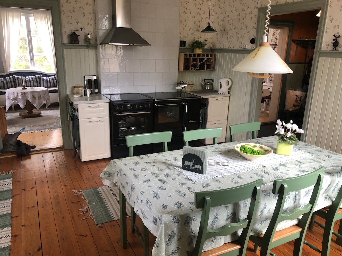 Welcome to Frödingelugnet – accommodation on a living farm. A beautiful, tastefully renovated house in traditional style – with wooden floors, tiled stoves, a large living room, modern comfort and a rural setting with dogs, cat, chickens, bees, horses, cows and hedgehogs nearby. Only 10 minutes to Astrid Lindgren’s World! Breakfast, towels and bed linen are available for an extra fee. Please inform the host in advance.