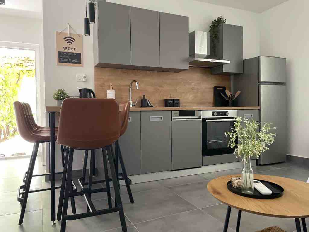 Uživajte sa svojom obitelji ili prijateljima u ovom s ljubavlju uređenom apartmanu. Opustite se uz roštilj u prekrasnom zelenom dvorištu s velikom terasom. Restorani i centar udaljeni su svega 5 minuta vožnje autom, a od plaže smo udaljeni 5 minuta laganog hoda.