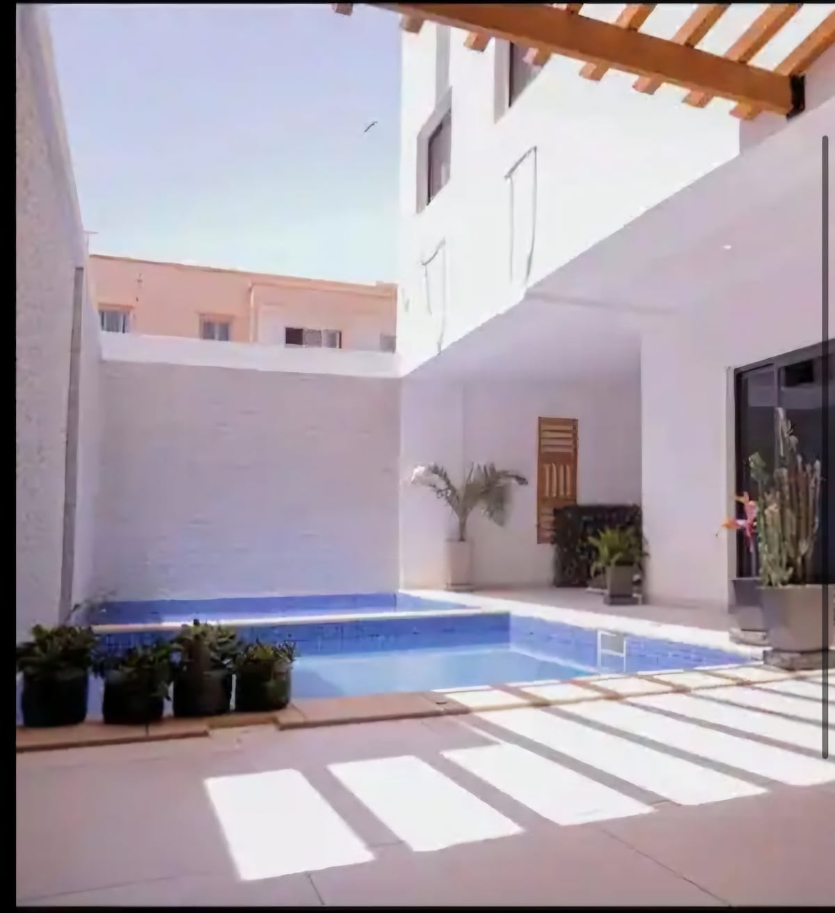 Este alojamiento es perfecto para grupos. Ubicado en una residencia segura con vigilancia las 24 horas, el apartamento ofrece un salón luminoso (TV Netflix/Prime, Hi-Fi, aire acondicionado), una cocina equipada con lavandería y tres cómodos dormitorios, dos de ellos con baño privado. Disfrutarás de la piscina comunitaria y de un entorno tranquilo, a solo 5 minutos a pie de la playa de Virage, y cerca de servicios, restaurantes junto al mar, casino, tiendas y taxis.