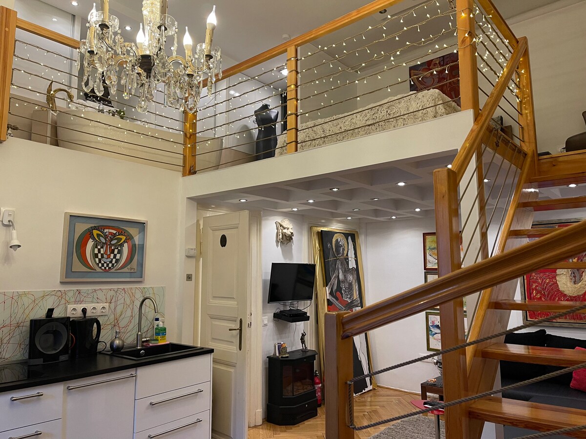 En un edificio histórico, apartamento LOFT, a 50 pasos del PUENTE DE LAS CADENAS. Al pie del puente de las Cadenas, el río Danubio en el camino al castillo real de Buda, a 80 pasos del tren funicular al castillo, a cinco minutos a pie de la iglesia de Mathew, el bastión de los pescadores a tiro de piedra del castillo Garden Bazar, un elegante apartamento te espera. Paseos cortos Parlamento, Ópera, Basílica de San Esteban, plaza Deák, bulevar Andrássy, sinagoga, pubs en ruinas, metro, baños termales: Széchenyi, Gellért, Rudas...