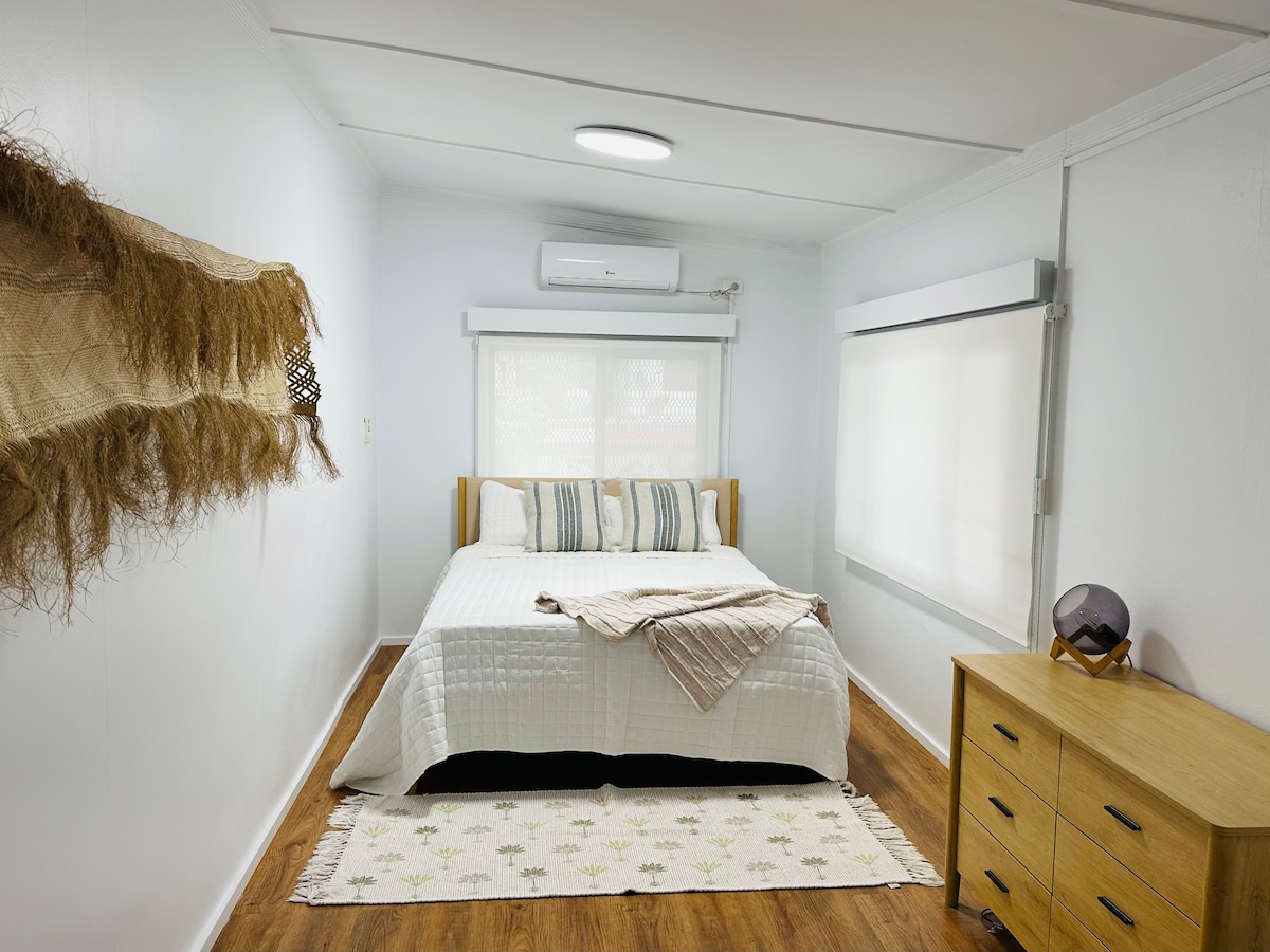 Welcome aboard The Wheelhouse, our minimalist 2-bedroom apartment, just minutes away from the airport. Perfect for business travellers or those needing a restful overnight stay before their flight, our space offers convenience, comfort & privacy with our two spacious bedrooms, a well-equipped kitchen, and a relaxing living area. Access to the airport within a 5-minute drive makes it super easy for travel plans and those early flights :)