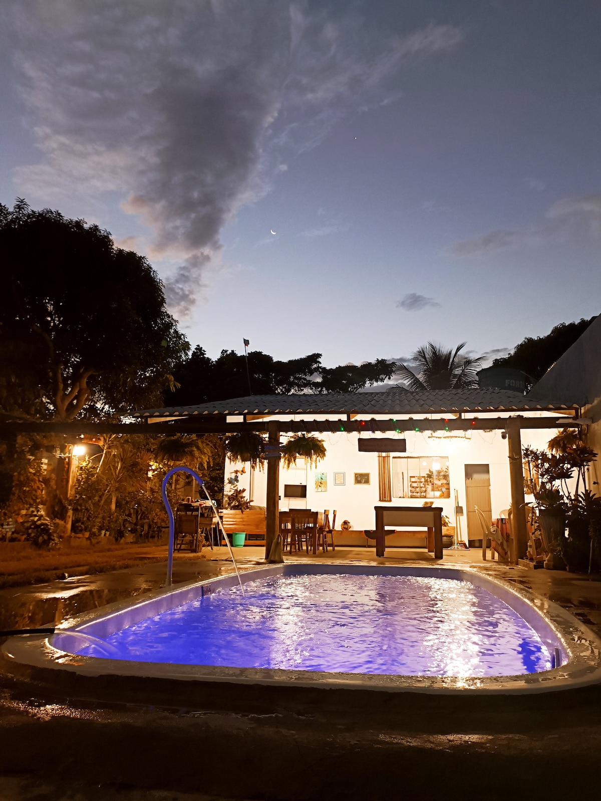 No olvidarás la atmósfera pacífica de este destino rústico. Casa con tres dormitorios, dos en suite ( uno con jacuzzi) , aire acondicionado en todas las habitaciones, incluida la sala de estar . Se quedan tranquilamente hasta 12 personas. Piscina grande, campo de fútbol con césped sintético, caja de voleibol, espacio gourmet completo, mesa de billar y un espacio de leña