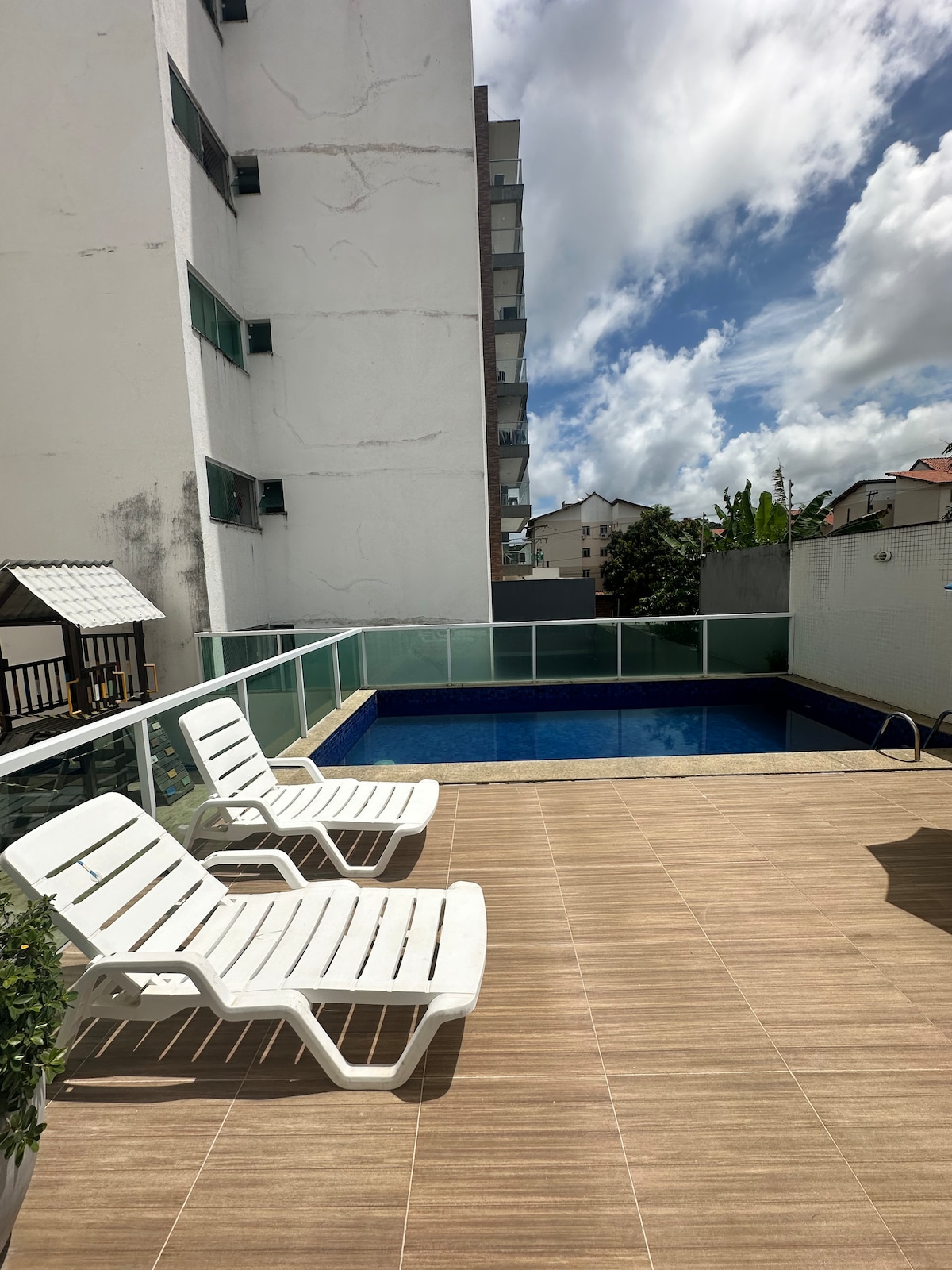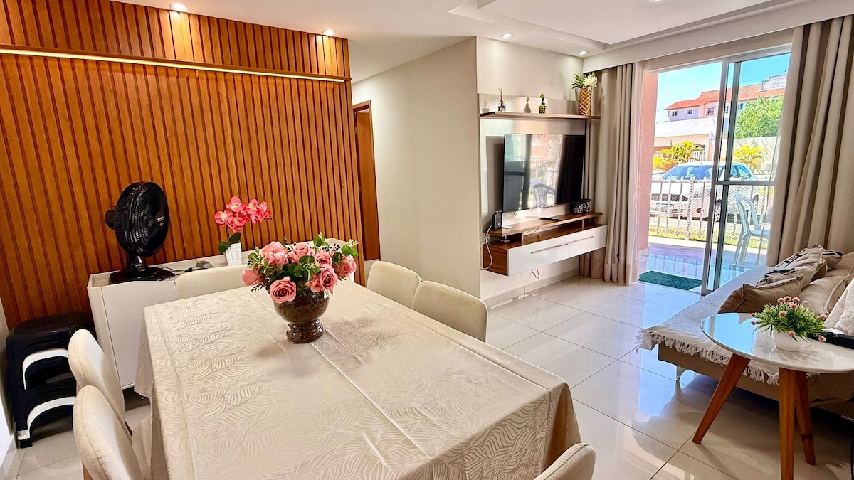 Apartamento en planta baja, cuenta con 2 dormitorios con aire acondicionado, 1 baño, comedor, cocina, área de servicio y 1 plaza de aparcamiento. El condominio cuenta con piscina (cerrada los lunes por mantenimiento), gimnasio, sauna, sala de juegos y cancha deportiva. Ofrecemos ropa de cama y toallas, utensilios de cocina, plancha, secador de pelo y jabón. El apartamento está situado a 200 m de la Praia dos Milionários, a 4 km del aeropuerto y a 10 minutos del centro histórico de la ciudad. ¡Será un placer recibirles!