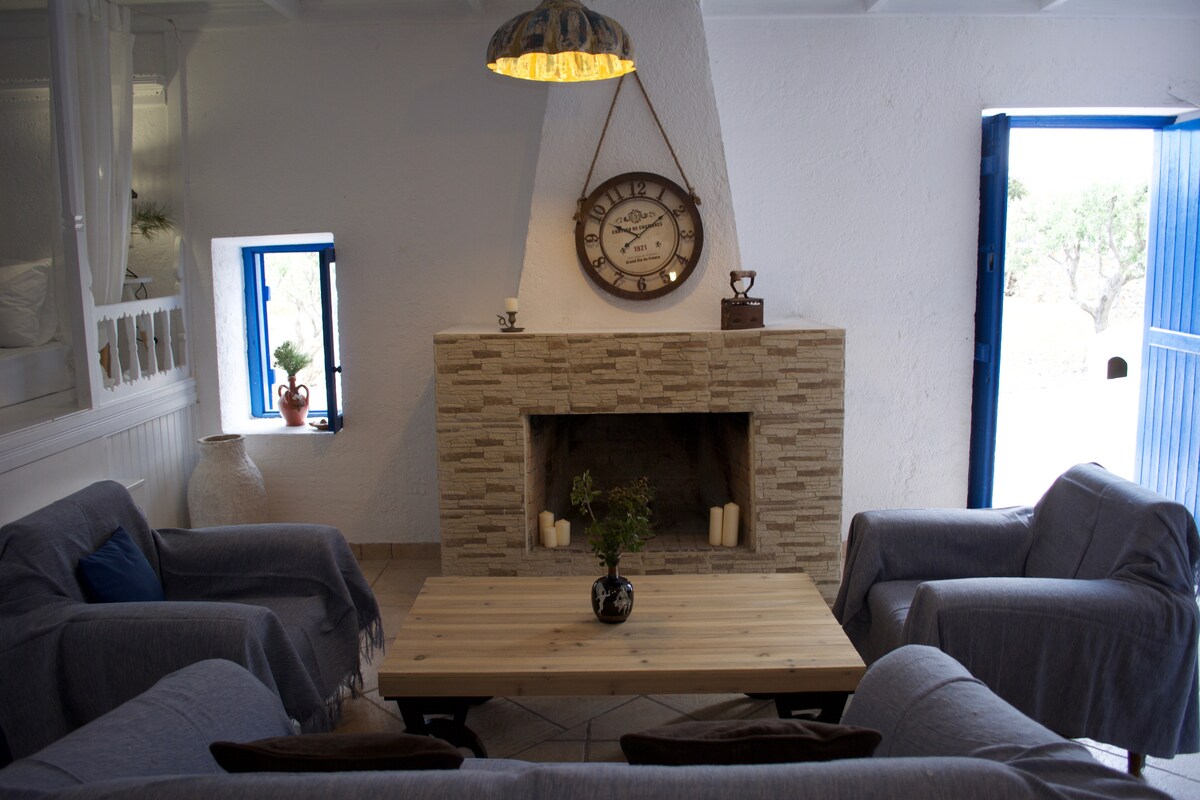 Spend your holiday in a very special surrounding. We are the perfect place for Greece lovers, for having a quiet and relaxed stay and are situated close to beaches, villages and the town. Our small guesthouse is lovingly designed and lies in the upper part of our property with olive trees and small fruit-trees, directly on the way to the picturesque beach of Achata on the east coast of the island. From the big sun terrace you will enjoy the dreamlike view of the surrounding area.