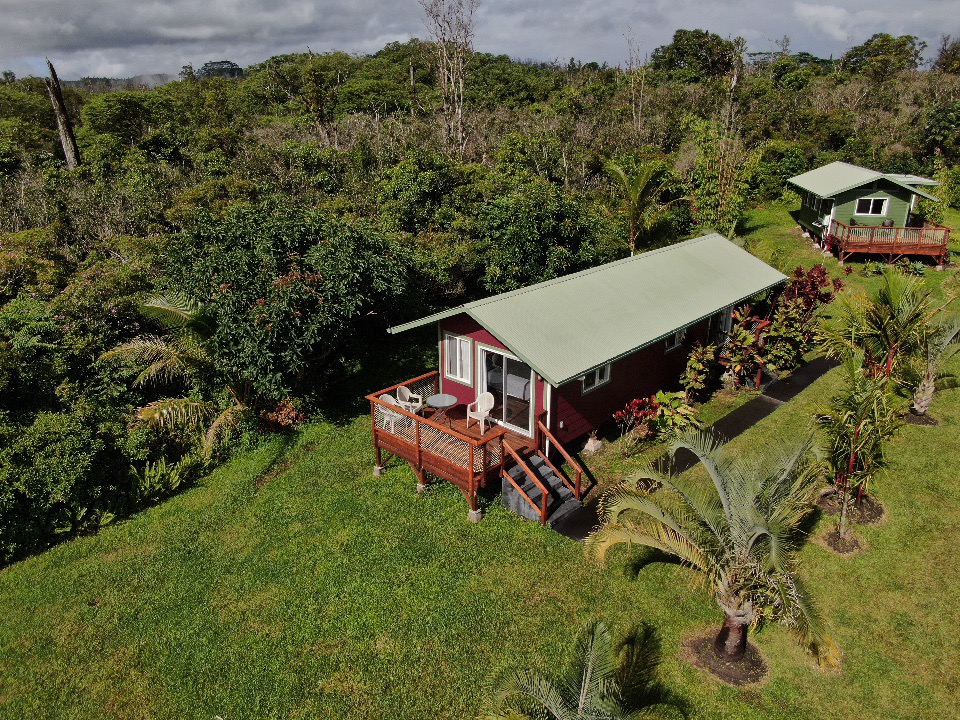 Licensed vacation rental on small banana farm 1 mi. from Kehena black sand beach, one of the least developed populated coasts in Hawaii. King bed, AC, full kitchen, screened lanai, outdoor shower & Jacuzzi bathtub/shower. Nearby viewing of the 2018 lava flow, swimming, snorkeling, hiking. Located in rural Kalapana Seaview neighborhood. Nearest store 10 mins, town with services is Pahoa, 20 mins away. Hilo, 45-60 minutes away. Volcano Park 1 hour. All of island accessible for day trips.