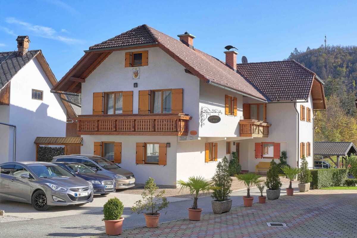 Bellamente amueblado, grande y equipado pensando en tu comodidad y con todas las comodidades y servicios modernos que esperarías, el apartamento ofrece todo lo que necesitas para una estancia tranquila y muy cómoda en Eslovenia. Está lejos del ruido y las multitudes, pero al mismo tiempo cerca de todo. ¡Es el alojamiento perfecto para alojarte mientras visitas el lago Bled, el parque nacional de Triglav o los Alpes eslovenos! El apartamento ocupa toda la planta superior y tiene 3 balcones grandes con unas vistas increíbles.