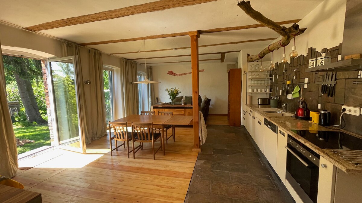 Vida de loft en el granero que se ha mantenido joven. ilse, tu loft rural, ofrece 130 metros cuadrados con 2 acogedoras habitaciones, una sala de estar con cocina abierta, una pequeña sauna, un gran baño y un aseo para invitados. Disfrutad de un lugar favorito con espacio suficiente para toda la familia, un pequeño jardín, grandes destinos y un buen rato en la isla de Rügen.
