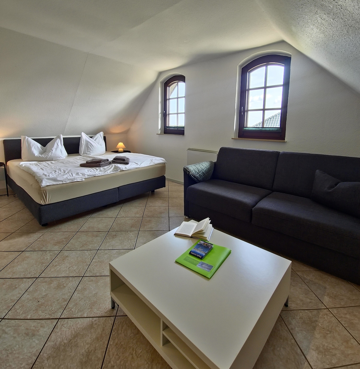 Genieße die Ruhe, das Wasser und die gute Luft - in unserem Wellness-Apartment für max. 5 Personen bleiben keine Wünsche offen. Unsere Highlights für dich: Stilvolle Wohnküche mit Zugang zur großzügigen Loggia mit Blick in den Garten und auf's Wasser. Nutze den Fitness- und Wellnessbereich mit Fitnessgeräten, Tauchbecken, Sauna, Schwimmbad (ca. 1,60-180 m tief & ca. 27 Grad) und Chill-out-Bereich mit Blick auf den Peenestrom. Parke kostenlos direkt am Haus.