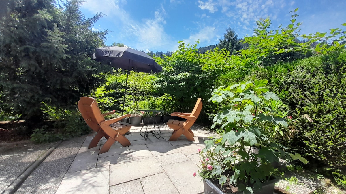 Situado al pie del Gran Balón, en Alsacia, en el corazón del Parque Natural Regional de los Vosgos a 700 m , en plena naturaleza, este nuevo y acogedor alojamiento en la planta baja de nuestra casa le traerá tranquilidad y todas las comodidades para una estancia de lo más relajante. Ofrece una vista panorámica del pico más alto de los Vosgos, el valle de Thann Saint Amarin y los Alpes en un pequeño pueblo tranquilo ideal para el senderismo, el deporte (BTT, esquí, raquetas de nieve, Trail, parapente, piscina, baño en el lago)