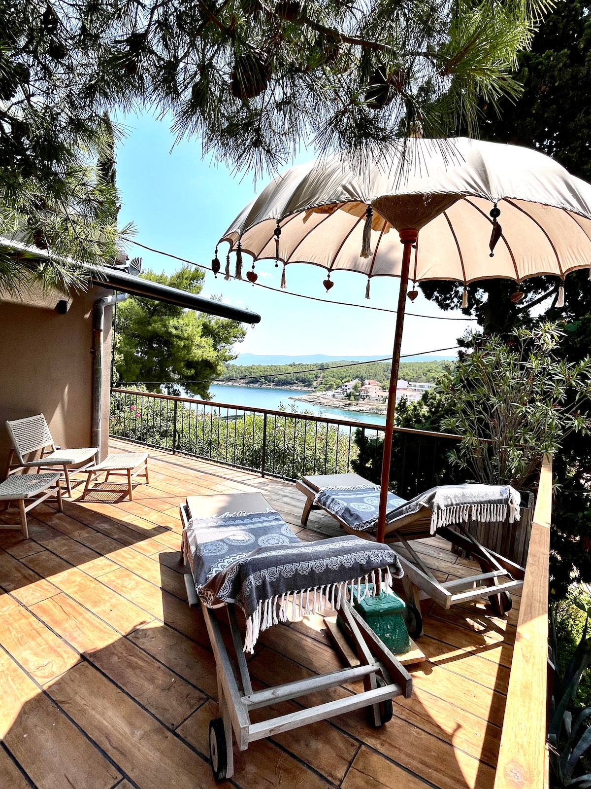 La casa con el apartamento estudio está ubicada cerca del puerto deportivo local "Bilo Idro" y en un acantilado sobre el mar. Desde la zona exterior del apartamento hay una impresionante vista al oeste de la isla de Hvar (hacia la ciudad de Hvar), a las Red Rocks y al mar Adriático. La casa está rodeada de antiguos pinos que proporcionan sombra natural y refrigerio en los días calurosos de verano. El apartamento estudio tiene su propia entrada y estacionamiento, y un espacio exterior separado.