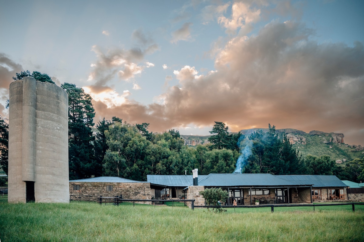 Ofrecemos alojamiento independiente apto para familias, así como acampada y visitas diurnas. Esta reserva natural privada y granja de huéspedes está situada a 1800 m en el cinturón de niebla de la parte alta de Drakensberg, cerca de Newcastle, Kwazulu Natal (35 km) y Memel, Estado Libre (30 km). Descubra la naturaleza prístina en este hermoso y dramático paisaje que incluye pastizales altos, ríos, cascadas, voladizos y bosques, desde su base en una casa de campo histórica ubicada en jardines cuidados bajo robles centenarios.