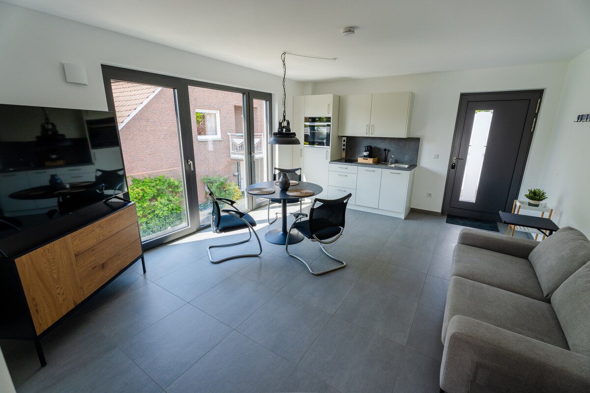 Modernes, gemütliches Studio für längere Arbeitsaufenthalte oder Kurzurlaube im Westmünsterland: traumhaft schlafen im komfortablen Boxspring-Doppelbett, Selbstversorgung in der komplett ausgestatteten Küche, modernes Bad mit begehbarer Dusche, effizientes Arbeiten mit Highspeed-Glasfaser-Internet (200Mbit). Die perfekte Alternative zum Hotel-Aufenthalt!