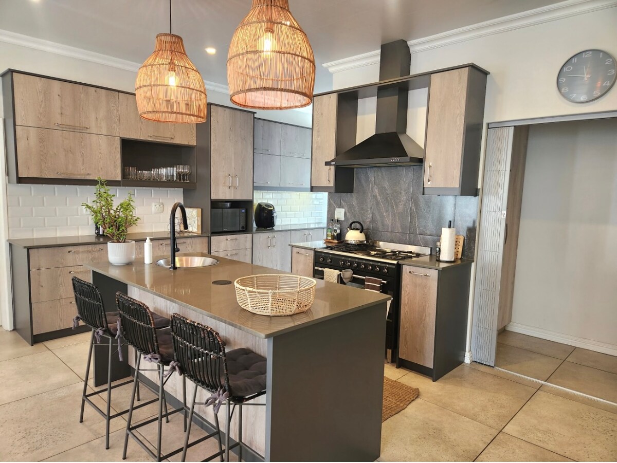 SIN DESCARGA DE CARGA💡 APTO PARA KITESURF🪁: ven y disfruta de tu escapada en esta cómoda, moderna, espaciosa y céntrica casa. La casa ofrece una chimenea interior y una zona de entretenimiento/braai interior que conduce a un gran patio trasero con una zona de fogata. Es apta para niños y bebés y, además, tus amigos peludos también son bienvenidos, ¡máximo 2 mascotas por 500 R por estancia! 🐶 Durante tu estancia, tendrás internet de fibra de 25 Mbps sin límites e ininterrumpido.