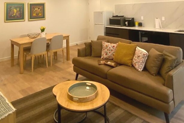 Escape to a lush urban oasis – ideal for a romantic retreat, relaxed staycation or Auckland stopover. Te Kawa blends comfort and character with a fairy-lit glasshouse, outdoor hot tub and newly added putting green, creating a memorable space to unwind. Architecturally designed with curated interior, the guest suite features a queen bed, ensuite, work desk, balcony, coffee & tea facilities – adjoining the host’s home yet offering privacy. • 25 min to Airport • 15 min to CBD