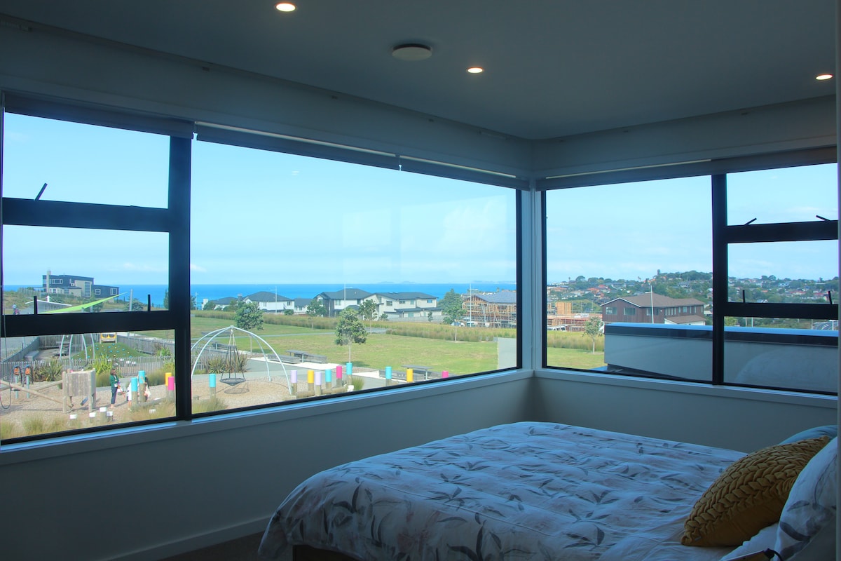 Cerca de una propiedad nueva debajo de nuestra casa, vistas al mar y mucho jardín, a 2 minutos a pie de la playa, tiendas, bares y cafeterías. Accesible en silla de ruedas. Hay una cama doble y un catre individual para el suelo si es necesario. Además, un sofá cama doble en el salón. Tenemos cuna para niños pequeños. Café y té, lavadora completa y cocina. Wifi incluido. Está totalmente equipado con todo lo que necesitas. TV para tu entretenimiento. Fácil viaje en autobús a la ciudad de Auckland si lo necesitas también.