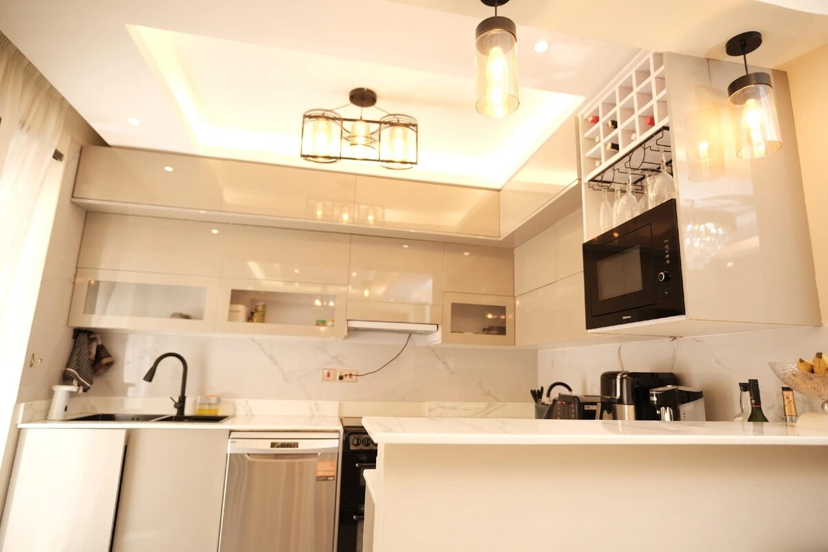 Este estético apartamento de un dormitorio se encuentra en Naalya Estate, cerca del supermercado Quality. Está a pocos minutos en coche de la conexión de la carretera de circunvalación norte que te lleva al aeropuerto a través de la autopista Express y cerca del centro comercial Acacia, con bonitos restaurantes y bares cerca. También hay varias rutas alternativas al centro de la ciudad. Los servicios son: - Todos los electrodomésticos de cocina, por ejemplo, arrocera, cafetera, licuadora - Wifi de alta velocidad. - Televisor inteligente Samsung de 55 pulgadas - Barra de sonido Samsung. -Lavadora