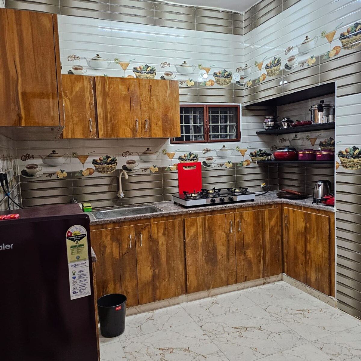 Bring the whole family to this great place and enjoy a peaceful stay. The 2 BHK apartment is fully furnished with cozy living room equipped with sofa, coffee table& TV for entertainment.The dining area includes a table next to a well-equipped kitchen including a refrigerator and gas stove. The bedroom is spacious queensized bed, a wardrobe & extra single bed making it ideal for families.The space also has AC, RO water supply &UPS power backup