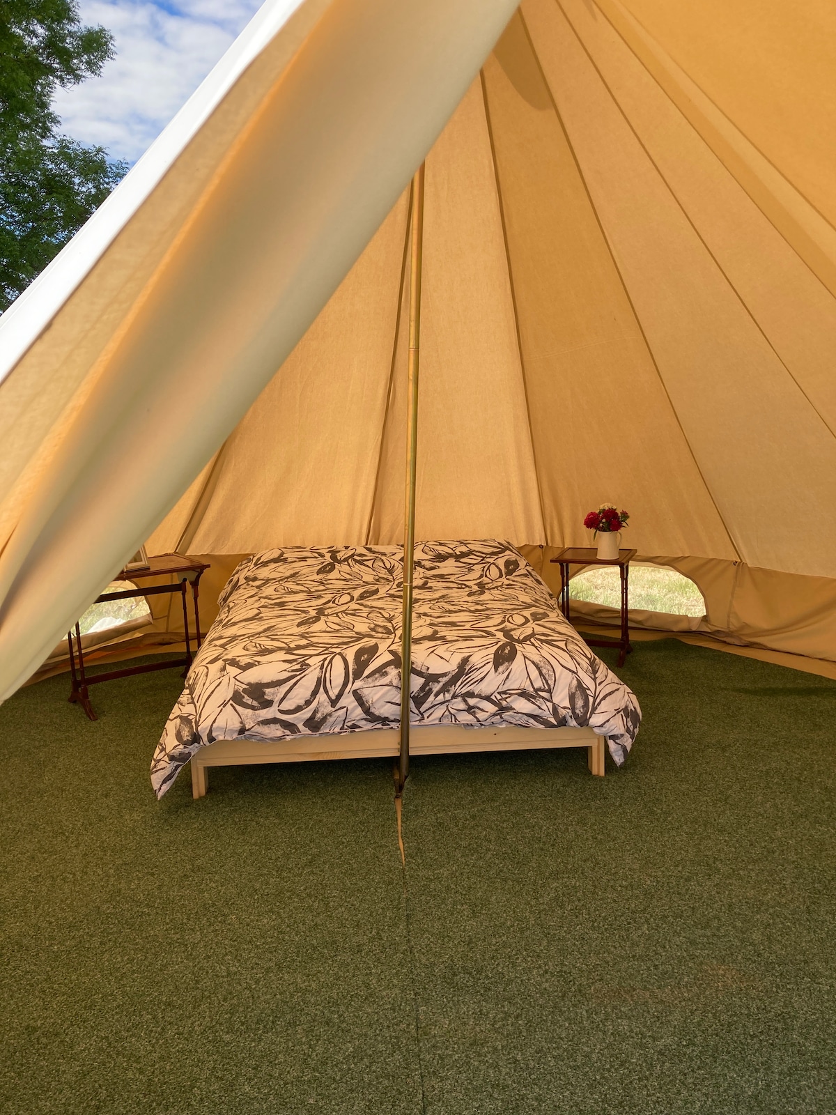 Cosy Bell Tent with King Bed, Fire Pit & Views