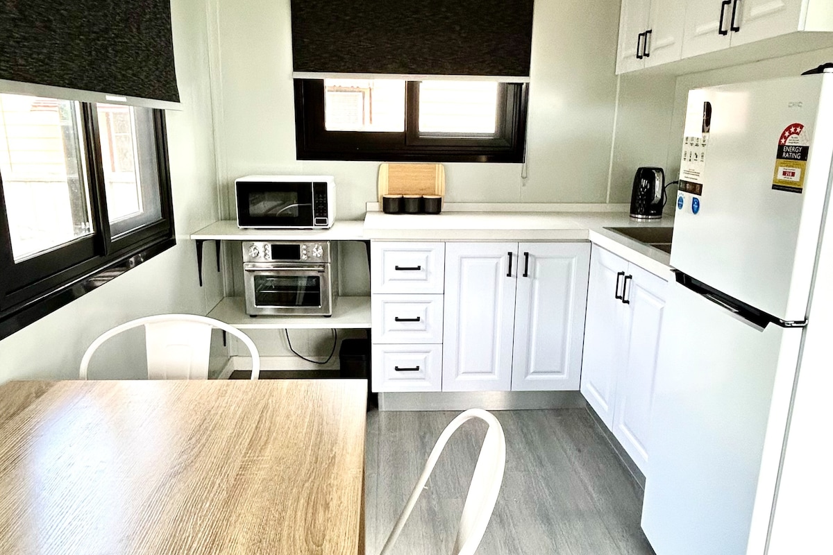 Regálate una verdadera experiencia de campamento en la cresta, mientras disfrutas de una comodidad de 5 estrellas, a solo 1,5 km del centro de la ciudad. Una llamativa casa de campo independiente, terminada en enero de 2021, rodeada de un jardín desértico establecido y matorrales nativos. Súper cómoda por dentro y por fuera, puedes relajarte en la cocina del «bush», disfrutar de un partido de tenis de mesa o ver una romántica puesta de sol en el porche delantero. Tu privacidad está garantizada, sin embargo, vivo cerca y estoy disponible para darte la bienvenida y responder a cualquier duda que surja.