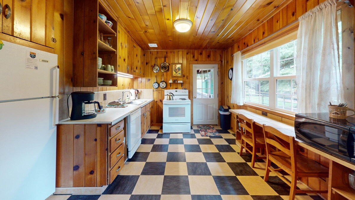 ¡Lo suficientemente cerca como para caminar a las actividades del centro vacacional en Wallowa Lake, pero no justo en medio de todo, lo que lo convierte en el lugar perfecto para la relajación y la privacidad! A pesar de que el río Wallowa está en el oído de la cabaña, hay un área de césped natural que da la impresión de una barrera que es perfecta para aquellos más pequeños tímidos que quieran quedarse en el patio hasta que estés listo para llevarlos al agua. ¡La acogedora cabaña Lil satisface todas las necesidades de una pequeña cabaña en las vacaciones del bosque!