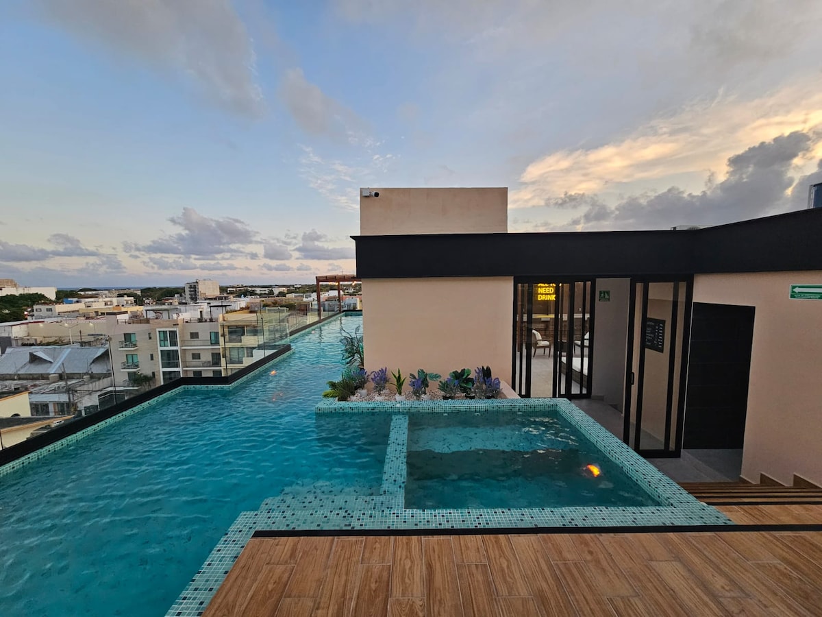 Escápate a este moderno condominio 1BR en el corazón de Playa del Carmen, a poca distancia a pie de la playa y de la vibrante Quinta Avenida. Disfruta de una cama tamaño king, cocina completa, sofá cama y un elegante baño con bañera de inmersión. Relájate en la azotea con piscina infinita, jacuzzi, bar y gimnasio. Ideal para parejas, viajeros solitarios o una elegante escapada a la playa. Ya sea que estés aquí para explorar, relajarte o tomar el sol, este condominio es tu refugio perfecto en la Riviera Maya.