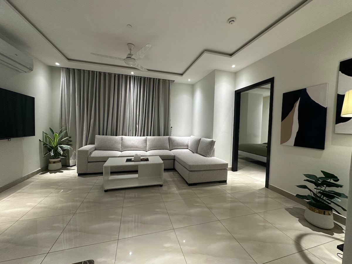 ★¡Te damos la bienvenida a tu estancia perfecta en el corazón de DHA! ★ Este moderno y totalmente amueblado departamento de lujo de 2 dormitorios está ubicado en el quinto piso del centro comercial Gold Crest, que ofrece impresionantes vistas, comodidades premium y comodidad inmejorable. Ya sea que estés en la ciudad por negocios, por placer o por una escapada de fin de semana, este espacio ofrece la comodidad y la elegancia que te mereces.