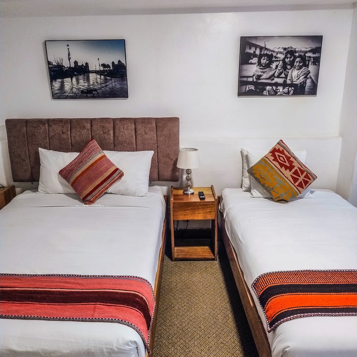 Disfruta Cusco desde el corazón del Centro Histórico en nuestro acogedor hotel, ubicado a pocos pasos de la Plaza de Armas. Ofrecemos habitaciones dobles, triples y familiares, todas privadas y con baño propio. Es un lugar tranquilo, cómodo y bien ubicado. Además, algunas áreas tienen una vista increíble hacia la Plaza, perfecta para relajarte y vivir la magia de la ciudad. Nota: el desayuno no esta incluido en el precio de la habitación, este es un servicio adicional por aparte.