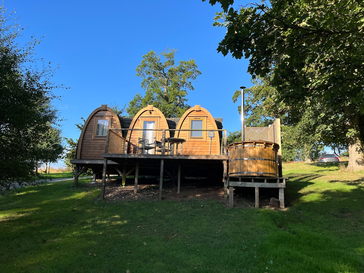 Esta elegante cápsula está perfectamente situada sobre Edlingham Vale, con las colinas de Simonside más allá. En el corazón de North Northumberland, los servicios de Alnwick y las actividades están a solo 10 minutos en coche. Junto a la cápsula hay aparcamiento para 2 coches. Nuestra cápsula tiene vistas a la granja Steading de Overthwarts, que ofrece vistas panorámicas al campo. Con tu propia entrada privada cerrada, puedes ir y venir a tu antojo o disfrutar de las vistas desde la comodidad de la bañera de hidromasaje Kirami de leña.