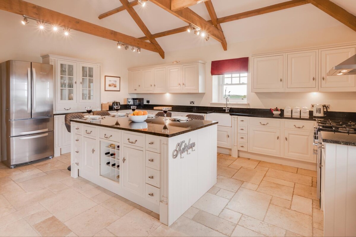 Totalmente reformada con un estándar extraordinario y catalogada como propiedad vacacional solo en 2020, The Old Dairy at Ellingham es una casa de campo absolutamente impresionante situada en los terrenos exteriores más pintorescos de la hermosa Ellingham Hall, ubicada a solo 6 millas de Bamburgh y a la misma distancia de Beadnell y Alnwick, y el resto de la Heritage Coastline. Esta elegante y espaciosa casa de campo de 2,100 pies cuadrados es perfecta para un grupo más grande o una familia que busca alojarse en un pintoresco pueblo de caja de bombones.