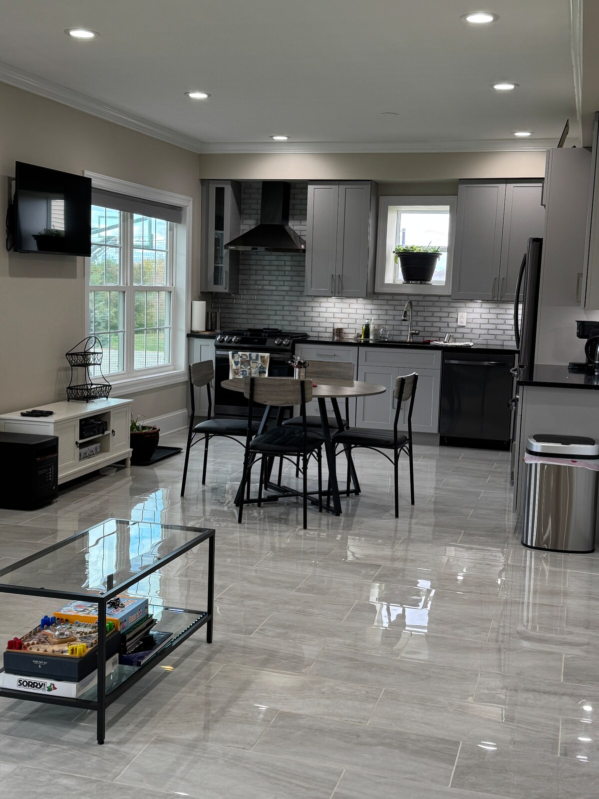 ¡Te damos la bienvenida a Marlboro! Este espacio privado en nuestro hogar cuenta con entrada privada, baño privado con una bonita ducha de pie, zona de comedor (no una cocina) con hervidor de agua y cafetera, tostadora, microondas y nevera con congelador. Hay una mesa y sillas, un sofá de dos plazas que se transforma en una pequeña cuna, una cama tamaño queen, un vestidor y un televisor inteligente de 55 pulgadas con un soporte de movimiento completo. Se nos permite operar en la ciudad de Marlboro y se lleva a cabo una inspección anual de incendios.