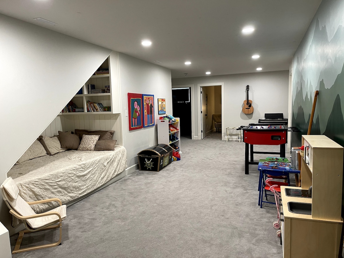 Disfruta de todas las comodidades de todo el alojamiento, incluido un patio cercado para mayor privacidad y seguridad de las mascotas. • Excelente ubicación en el centro de la ciudad frente a tiendas y autopistas. • desayunos de autoservicio de cortesía con café sin fin aseguran que su día de viaje comience con relajación •platos, tazas, utensilios, ollas, sartenes, microondas, nevera, estufa • 3 habitaciones, 1 cama tamaño king, 2 camas tamaño queen, ropa de cama, moisés para bebé • 3 baños con toallas/amenidades, bañera, bañera de hidromasaje/duchas • TV, lavandería, plancha, WiFi, ventiladores, estacionamiento privado, garaje, congelador
