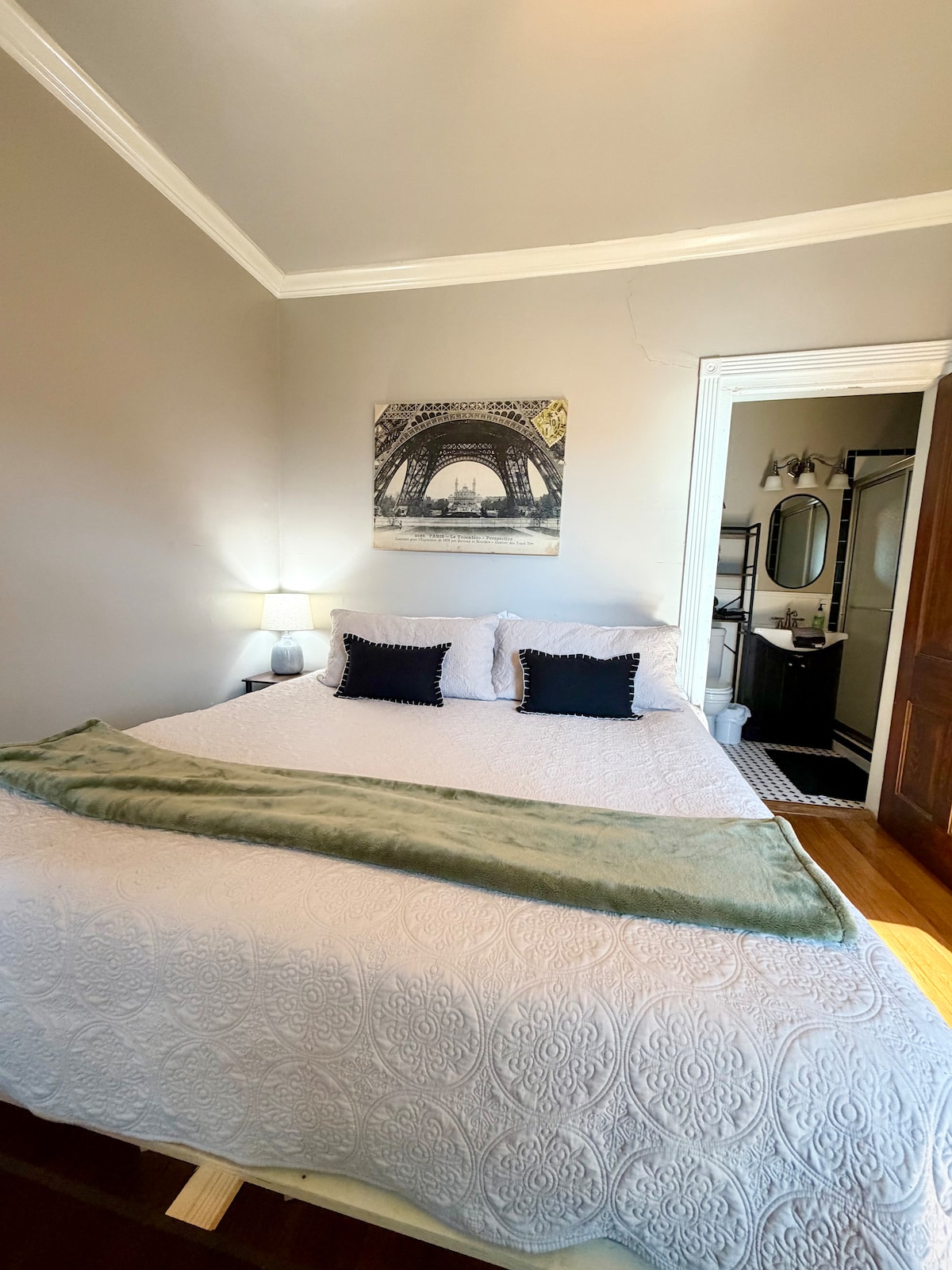 Este apartamento de segundo piso se encuentra directamente en Fountain Square, en el centro de Bowling Green, KY. A pocos pasos de pintorescas tiendas y restaurantes, esta espaciosa unidad de 900 pies cuadrados ofrece una cama tamaño king junto a la sala de estar. También hay un dormitorio independiente con una cama tamaño queen. Ambas áreas tienen vistas a la histórica plaza del centro.