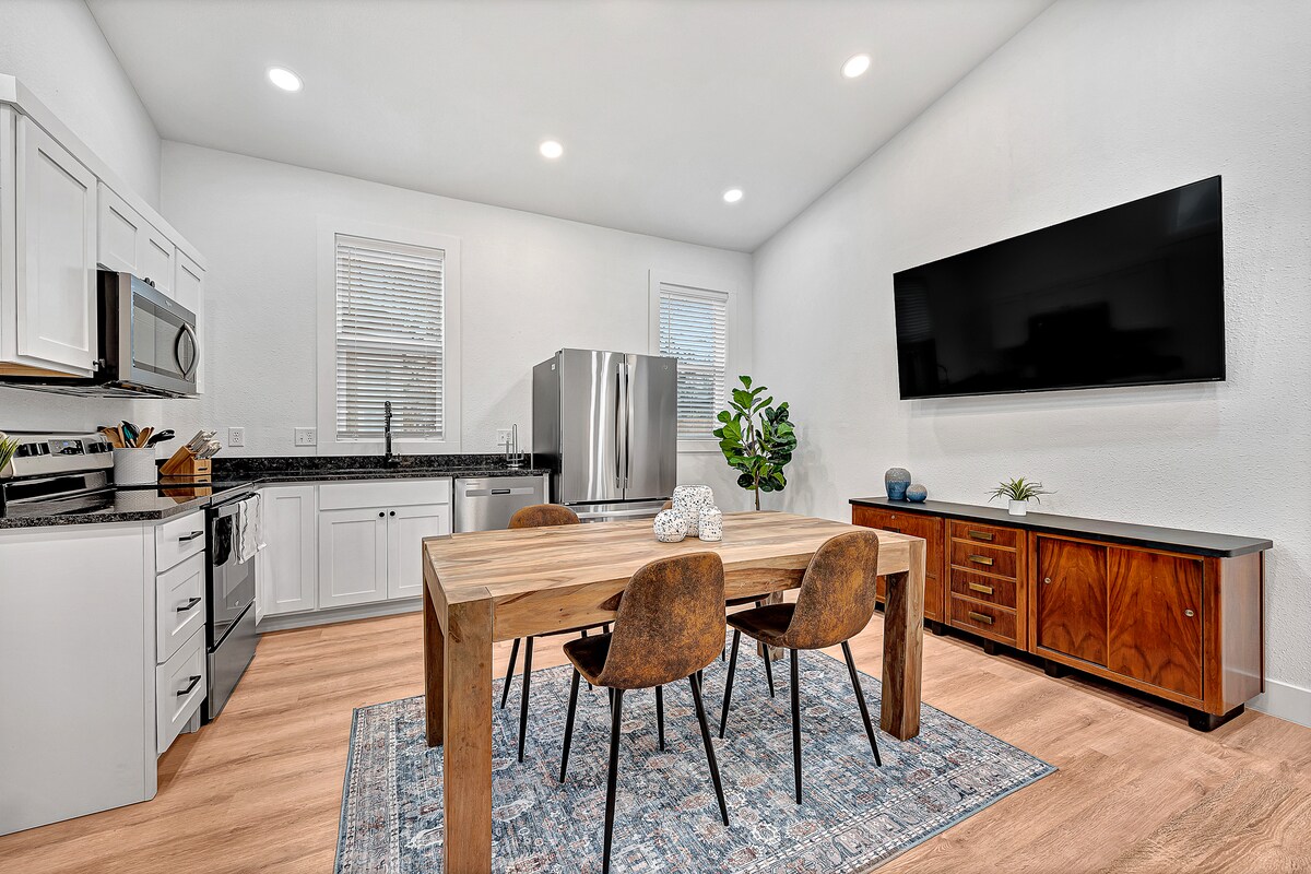 ¡Te damos la bienvenida a nuestra encantadora escapada a Siloam Springs, donde la comodidad moderna se une a la hospitalidad sureña! Ubicada a pocos pasos del centro de la ciudad, esta elegante casa de huéspedes es tu refugio perfecto con piscina para la máxima relajación. Con acceso privado, techos abovedados de 10', TV de 70" en la sala de estar/cocina/comedor de concepto abierto, ducha a ras de suelo con azulejos personalizados y cama tamaño queen de primera calidad en el dormitorio, te sorprenderá lo grande que se siente y funciona el espacio. El sofá se convierte en una cómoda cama tamaño queen.