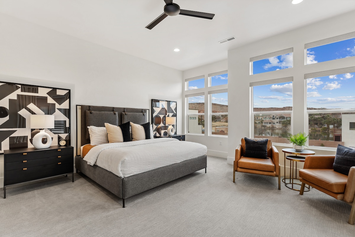 ¡La nueva casa adosada se encuentra a 36 millas del Parque Nacional de Zion y cuenta con un jacuzzi privado al aire libre, una chimenea y una piscina climatizada! La tranquila comunidad de Vida Sol se encuentra a solo 2 minutos de la I-15 y a 5 minutos de las tiendas outlet de St George y Walmart/Costco. Ciclismo de montaña, senderos para caminar y dos parques cercanos. ✓Jacuzzi privado 🏊Piscina climatizada (compartida, climatizada durante todo el año) 🛏️3 HABITACIONES/3 BAÑOS 🛋️2 salas de estar 👨🍳 Cocina de chef 📶Internet rápido/gratis 📺Televisores inteligentes ❄️Aire acondicionado Lugar para hacer🔥 fogata 🍖Parrilla 🛀Bañera grande