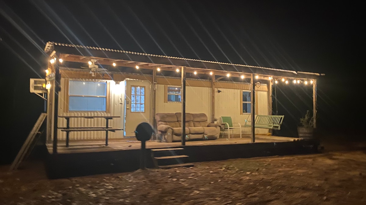 La cabaña de campamento es nuestro refugio más pequeño situado en una pequeña colina en una curva del arroyo. Te recordará a un campamento de pesca, con muebles más bonitos, por supuesto. Te sentirás como en casa con su cocina completa, baño y dormitorio individual. Hay un porche delantero cubierto de 8 x 14 y un porche trasero abierto de 12 x 14 que conduce al arroyo. Es de 400 pies cuadrados de sala de estar con un futón en la sala de estar. Diseñada para un máximo de 4 personas, esta pintoresca cabaña debería aspirar a parejas y a nuestros huéspedes con presupuesto limitado.