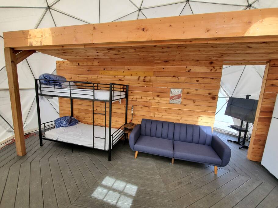 Cúpula única y privada en la orilla del Lago Azul en Coulee City. Si no te has alojado en una cúpula antes de disfrutar de un capricho, ¡glamping en su máxima expresión! Esta experiencia en la cúpula es perfecta para las personas que buscan relajarse y descansar. La cúpula está diseñada para maximizar el espacio sin sacrificar el confort. Esta cúpula tiene todas las características de glamping desde la cama tamaño king con vistas al lago, litera para niños, sofá futón, sofá futón, TV, TV y nevera.