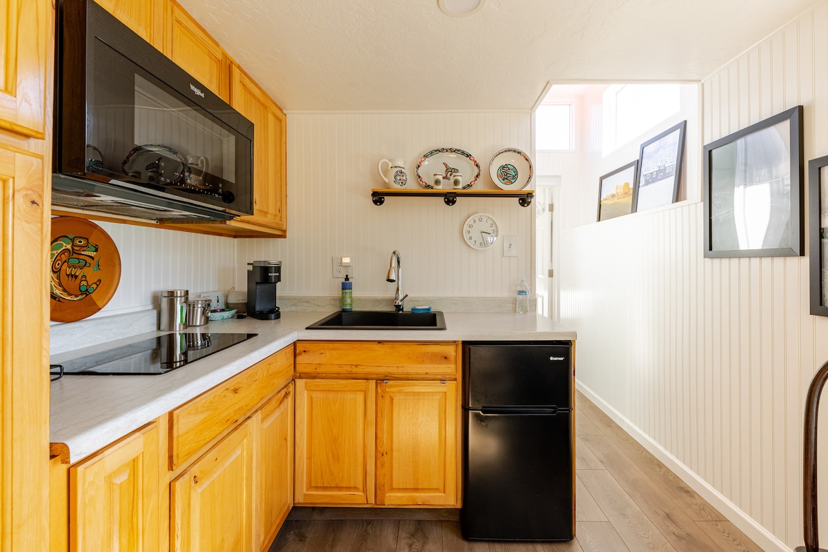 Este acogedor furgón de madera roja tiene una cama tamaño queen, aire acondicionado y una gran bañera de hidromasaje en un cálido baño privado abierto. El vagón también incluye una mininevera y una cafetera. Servimos un desayuno continental dentro de la posada, así que reserva el número correcto de huéspedes, ya que cocinamos el desayuno de acuerdo con el número de huéspedes en cada habitación. Nuestras cabos admiten mascotas con una tarifa de limpieza de 25,00 por estancia a pagar a la llegada