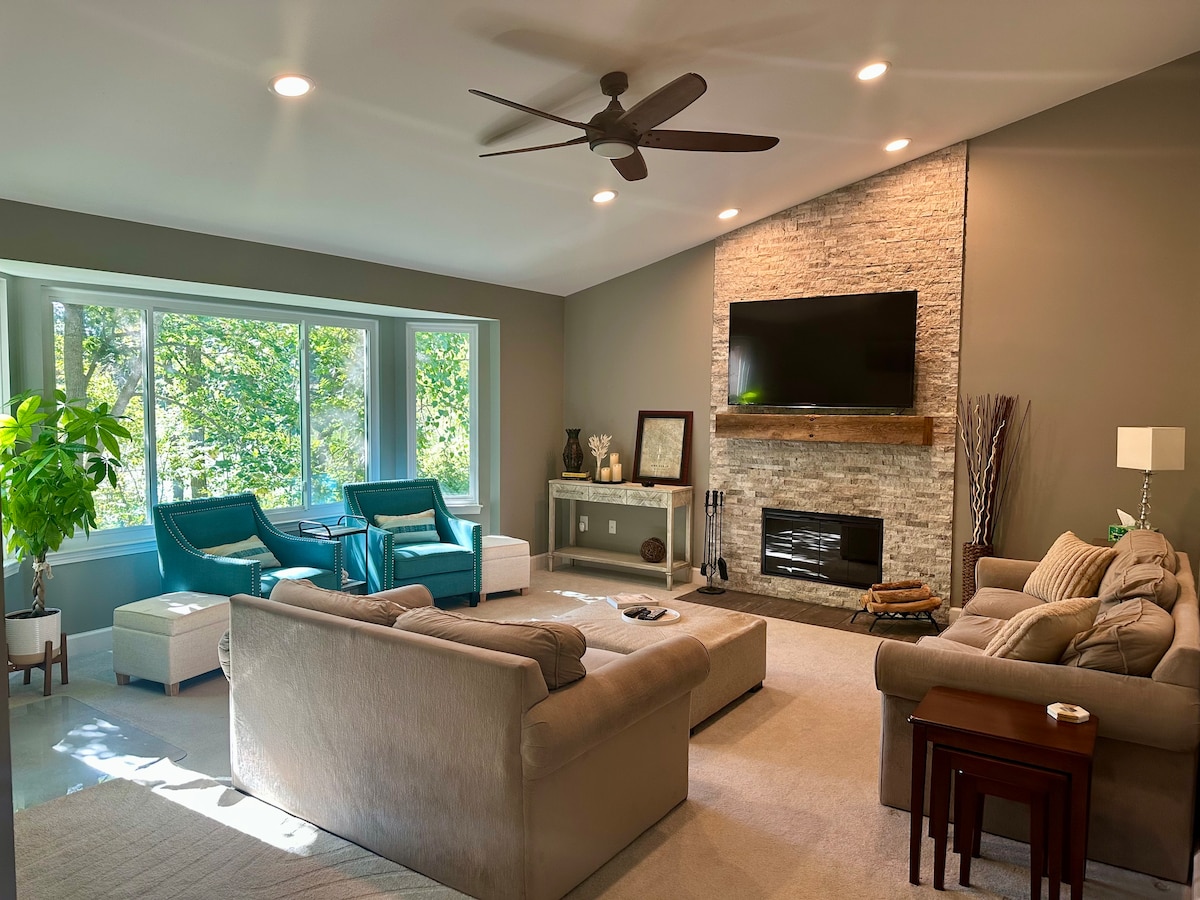 French Country 2+ ambiente encantador de aire acondicionado con un toque de capricho y estilo, la cocina centralizada del chef ofrece gabinetes de cerezo, encimeras de granito negro, electrodomésticos SS y estanterías abiertas que muestran tesoros. La gran habitación con techos abovedados, impresionante chimenea de gas del piso al techo y grandes ventanales en todas partes. Es perfecto para reunirse con seres queridos, mientras que un estudio privado. Arriba, encuentra 3 dormitorios, incluida una suite principal con balcón privado, acogedora chimenea y baño apto para la realeza.