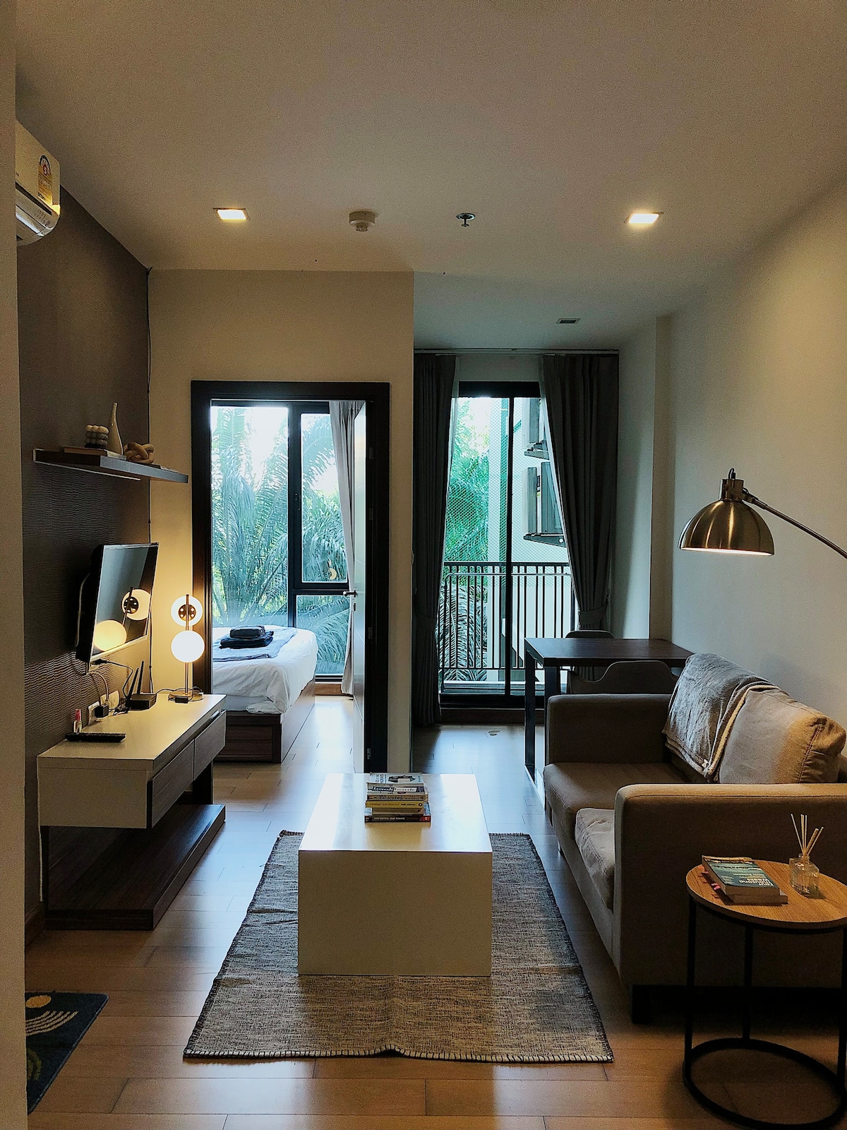 A diferencia de las típicas unidades más pequeñas, estás reservando un refugio exclusivo de 46 m2, lo que lo convierte en uno de los espacios más grandes y lujosos disponibles en el edificio. Estamos perfectamente situados en la planta 15.ª, lo que te garantiza una vista panorámica ininterrumpida que simplemente no se puede igualar con las plantas inferiores. Disfrutará de unas vistas despejadas de la magnífica montaña Doi Suthep, enmarcada perfectamente por su ventana y su enorme balcón privado. La unidad cuenta con una cama tamaño king y un televisor LED inteligente Ultra HD 4K de 47".